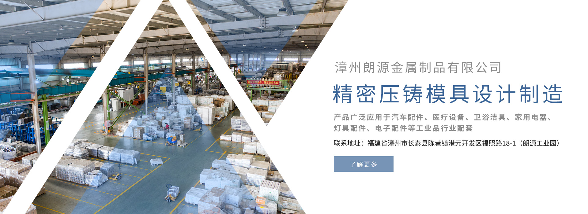 公司集精密壓鑄模具設計與制造,精密鋁、鋅等合金產品壓鑄、加工、表面處理為一體,具有完善的鋁、鋅合金制造產業鏈,技術實力雄厚,在福建省同行業名列前茅。為國內知名汽車配件、醫療設備、衛浴潔具、家用電器、燈具配件、電子配件等工業品行業配套,生產中高端成品和半成品。